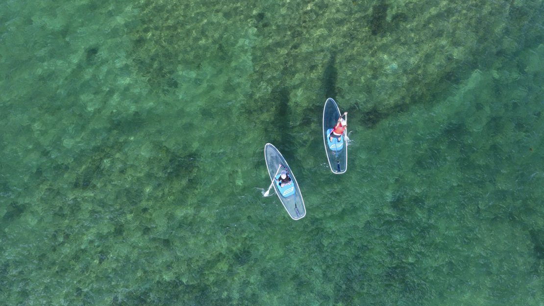 一邊乘坐 SUP(立槳板),一邊近距離觀察翡翠綠海水中的世界,是一種全新的感官體驗。