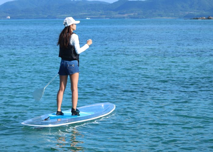 透過透明SUP體驗(Transparent SUP),感受宛如站在水面上的奇妙感覺,享受與大海合而一的獨特魅力吧。