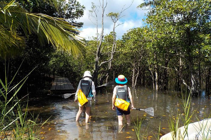 石垣港出發(9:00) ~ 抵達西表島大原港(9:40)= 報到處(準備・獨木舟教學)‥ 紅樹林獨木舟(約30分鐘) ~ 叢林健行(約30分鐘)‥ Sangara瀑布(玩水・午餐)‥ 叢林健行(約30分鐘)‥ 紅樹林獨木舟(約30分鐘)‥ 報到處(淋浴・更衣)= 大原港出發(16:30)~ 抵達石垣港(17:20)