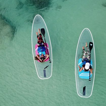 カヤックを漕ぐ楽しさと、グラスボートの様にクリアな 底面から海中のサンゴやお魚を観察出来る、2つの楽しさが一度に味わえる贅沢メニュー!