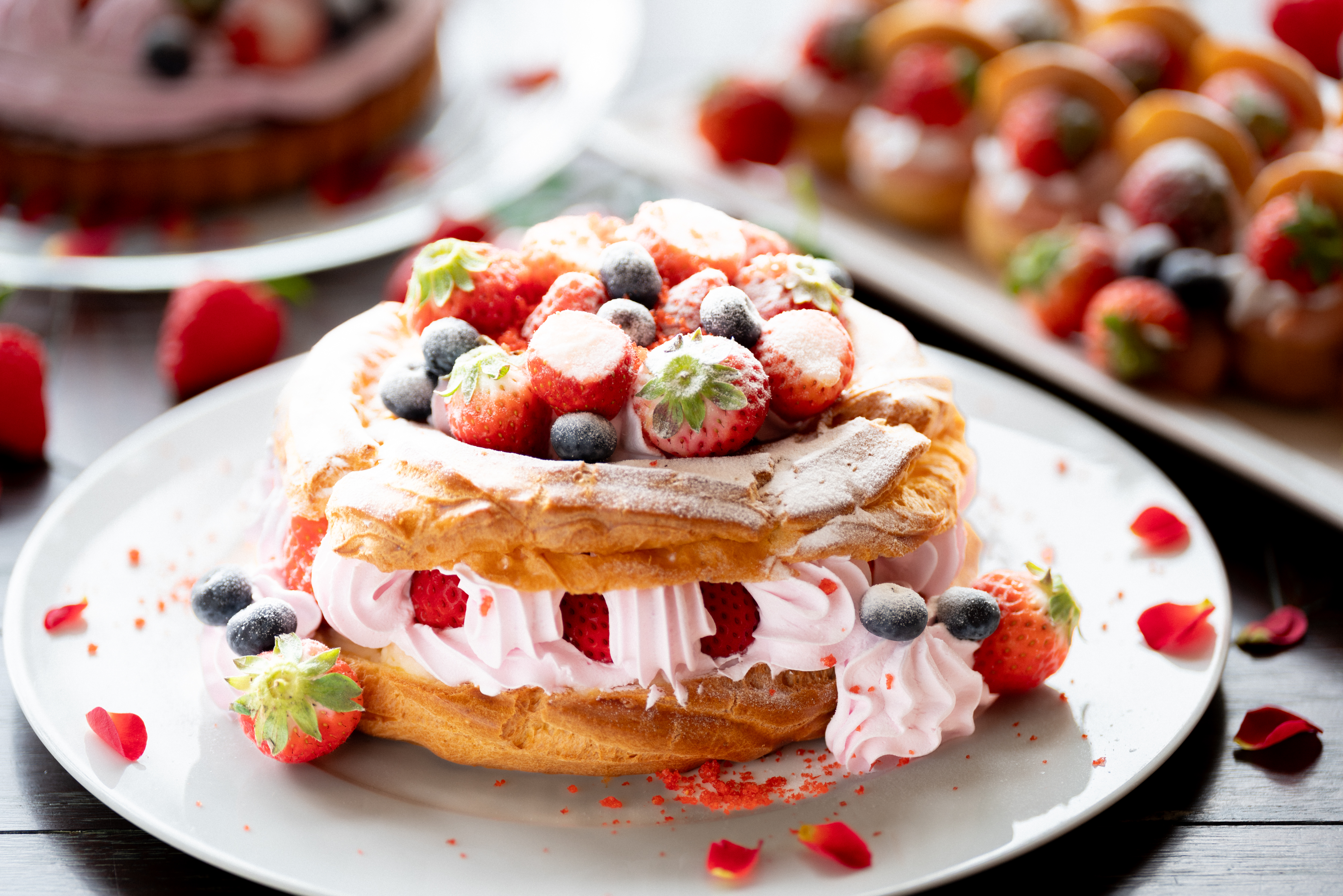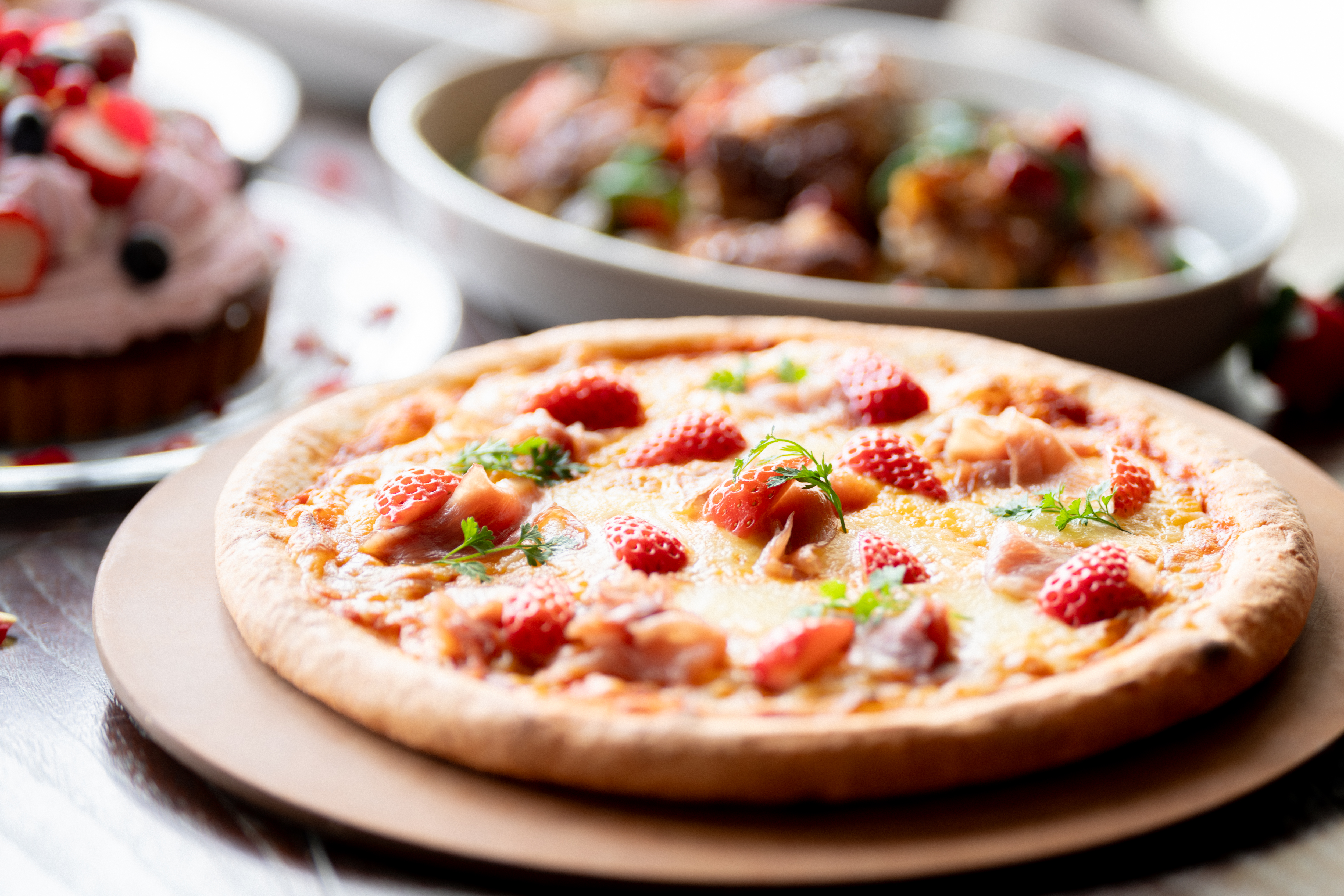 「いちごトロペジェンヌ」や「いちごのパリ・ブレスト」など、いちごをふんだんに使用したスイーツをはじめ、毎年人気の「いちごチーズピッツァ」や「カプレーゼ」など、季節感あふれる料理を豊富にご用意しました。