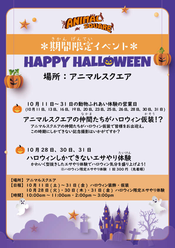 (※ハロウィン限定エサやり体験 1回300円 先着順)
