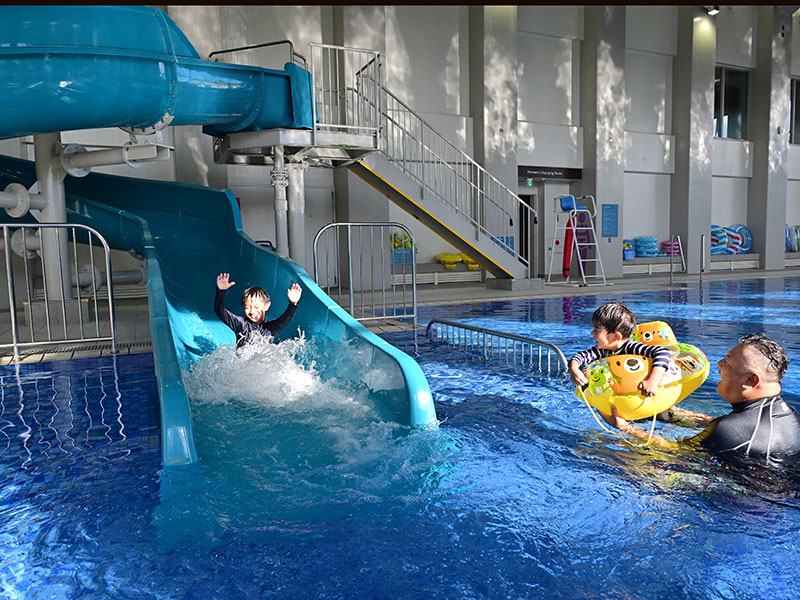 天気も寒さも関係なし!常夏インドアプール:天候や気温を気にせず遊べる温水プールには、子供たちが大好きなウォータースライダーも完備。冬でも思いっきり水しぶきをあげて、アクティブなリゾートタイムを満喫できます。