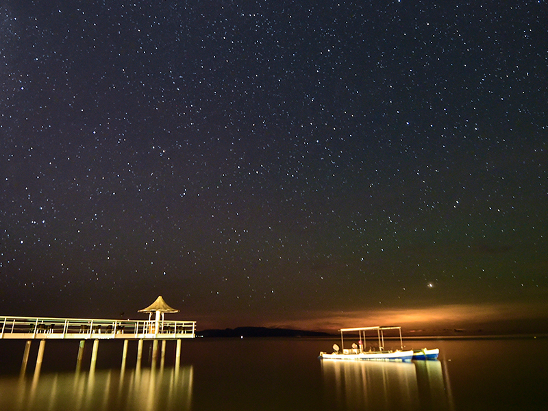 日本初の「星空保護区」で見る冬の星:空気が澄み渡る冬は、一年で最も星が美しく輝く季節。食後はビーチへ出て、波音を聞きながら満天の星空を見上げて。降り注ぐような星の輝きが、旅の夜をロマンティックに締めくくります。